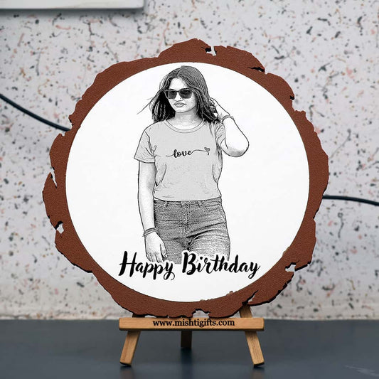 Natural Wooden Engraved Plaque with bark for Birthday