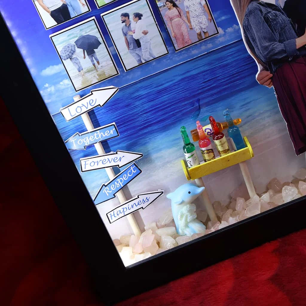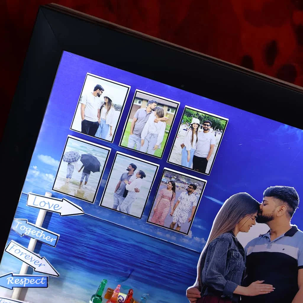 Customize the surname to your preference, making it a unique and meaningful addition to your home decor. The miniature is adorned with six photos, allowing you to showcase your cherished memories in a whimsical and captivating manner. Additionally, a cute little couple miniature adds an extra layer of sweetness to the scene.