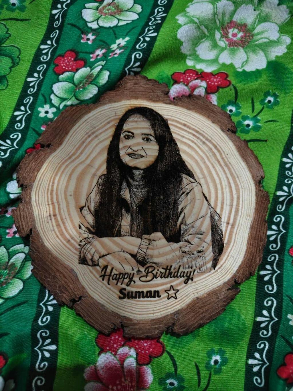 Himalayan Wooden Slice Photo Engraved Frame – Happy Birthday