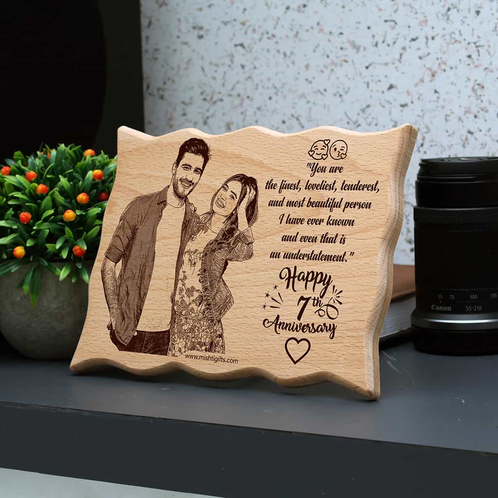 - The material use is high-quality wood for Laser Engraved Wave shape Wooden photo frame for Happy Anniversary