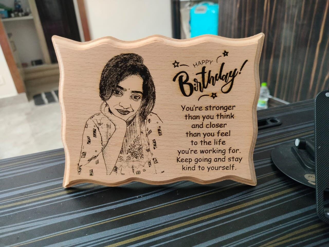 - The material use is high-quality wood for Laser Engraved Wave Shape Wooden photo frame for Happy Birthday