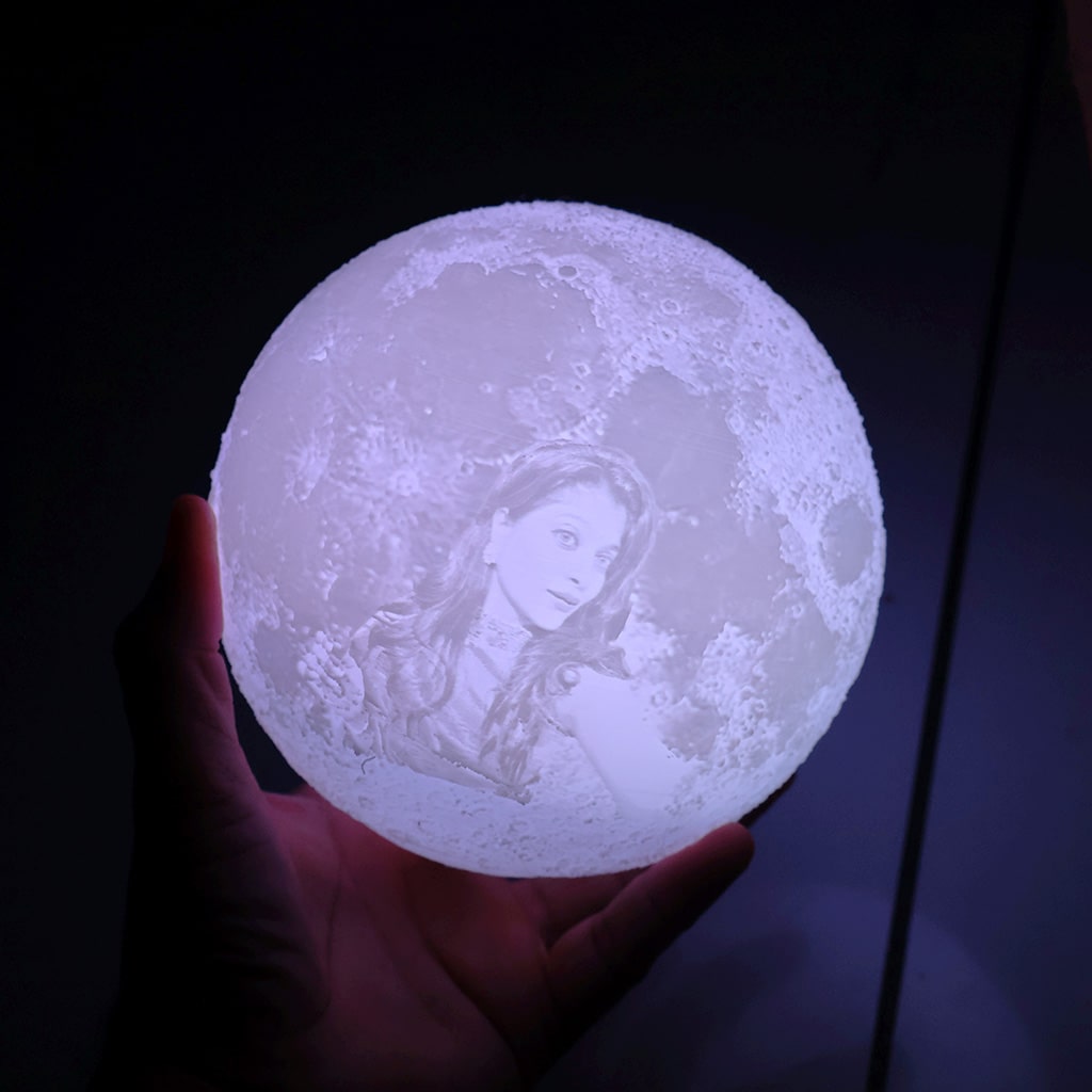 - Realistic Lunar Surface: Our Father's Day special Personalized photo moon lamp is meticulously crafted using advanced 3D printing technology, ensuring an incredibly realistic depiction of the moon’s surface. Every crater, ridge, and valley is faithfully reproduced, creating a mesmerizing lunar landscape.